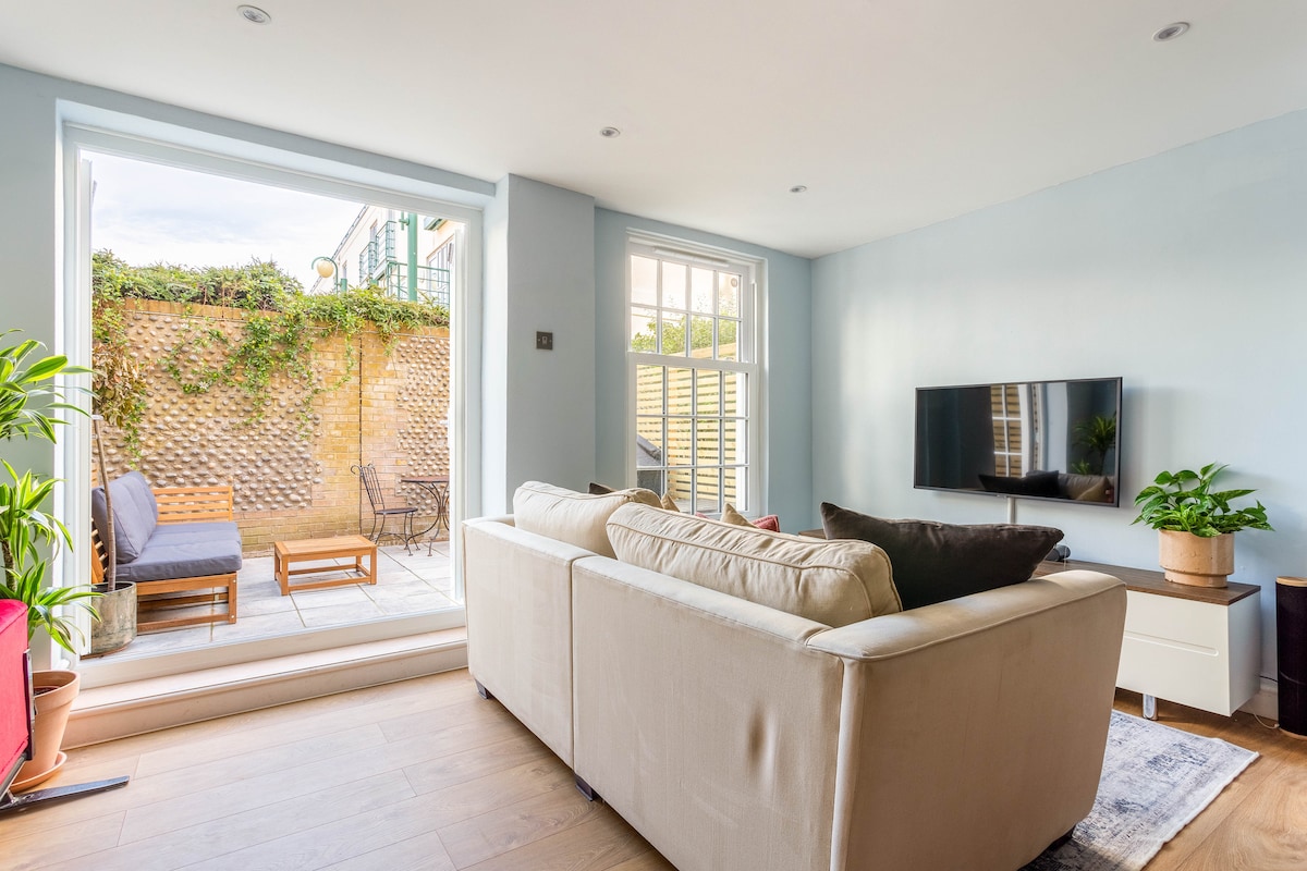 Björt og stílhrein 1 rúma íbúð með rúmgóðum garði sem hentar vel fyrir sólríkt grill. Aðeins 2 mín. frá ströndinni og 5 mín. frá miðbæ Brighton. Njóttu veitingastaða, bara, kaffihúsa, verslana og strandarinnar við dyrnar hjá þér. Íbúðin er nýlega endurbætt og er með grillaðstöðu, fullbúið eldhús, borðstofu/vinnuborð og notalegan sófa utandyra ásamt sjónvarpi innandyra með snjallsjónvarpi og stórri streymisþjónustu. Svefnherbergið er með king-size rúm og stóran skáp með hangandi plássi.