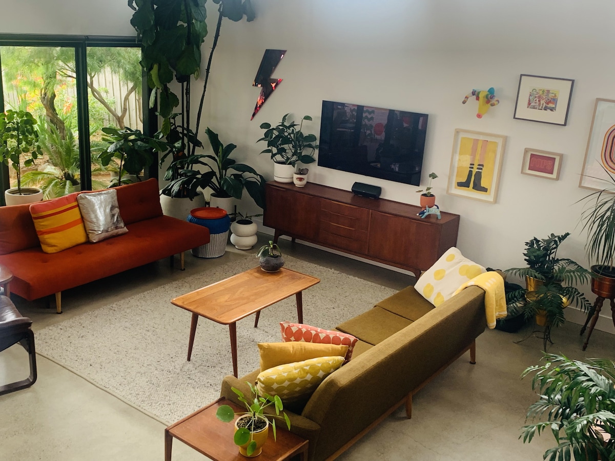 Relax with the whole family at this peaceful place to stay. With spacious private garden. 2 large bedrooms, and third bedroom is a guest bedroom located at the back of the garden and fitted with shower, toilet and and heating and cooling system plus additional living area. The main house has flat-screen TV. Air conditioning, new open plan kitchen, dining and living area, Guests can also relax in the beautiful backyard with BBQ facilities, open fire pit, beautiful roses garden and fruit trees.