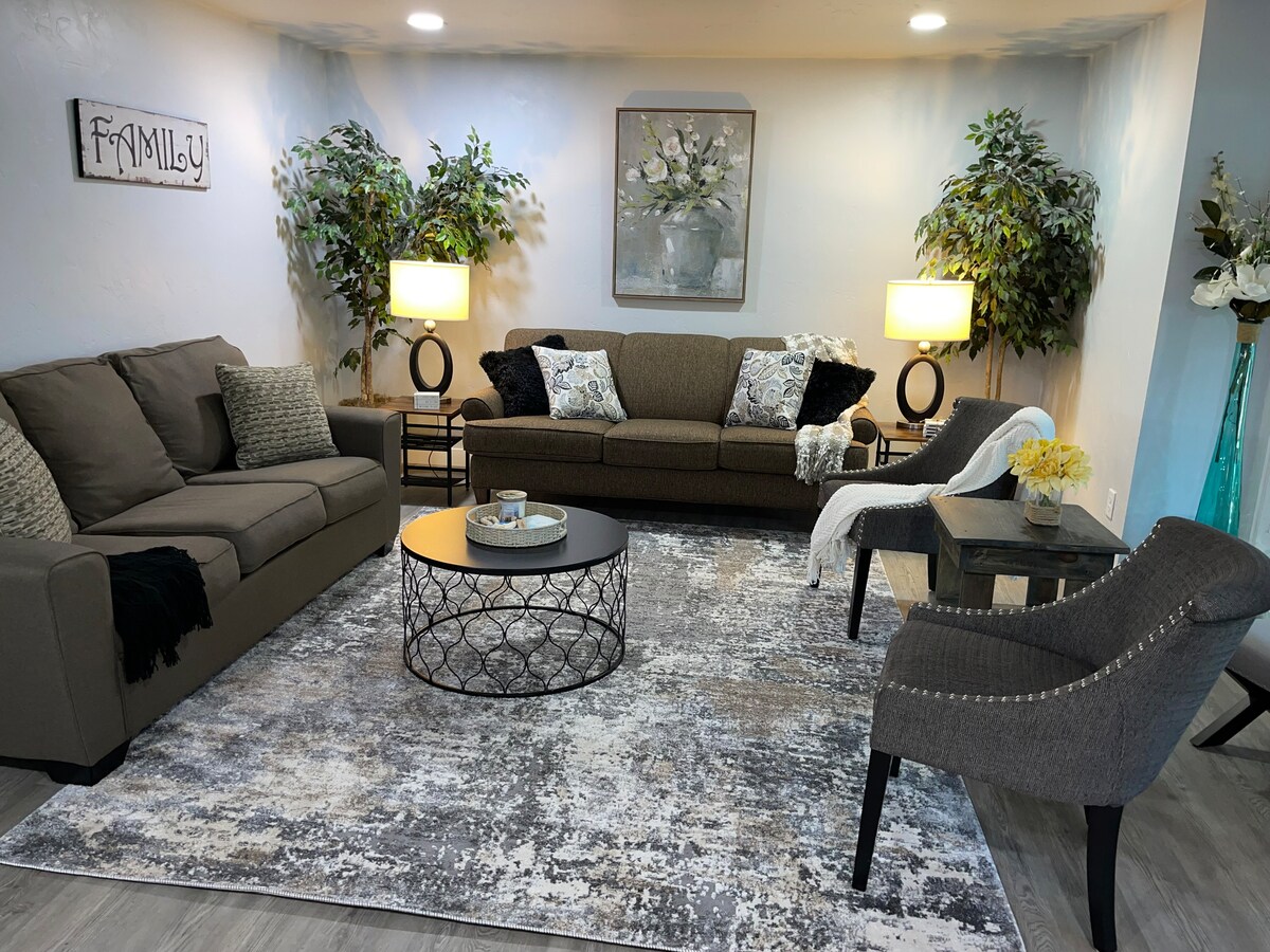 •Fljótur 3 mínútur frá þjóðvegi 43. Green Bay: 15 mínútur og Manitowac er aðeins í 30 mínútna fjarlægð. • Fullbúið eldhús og næg þægindi. • Verönd með eldgryfju • Gæludýr velkomin • Sveigjanleg sjálfsinnritun/útritun • Öruggt, rótgróið hverfi með trjáklæddum, vel upplýstum götum • Full Spanish Direct TV pakki! • Matreiðsla, skutla og þvottaþjónusta í boði