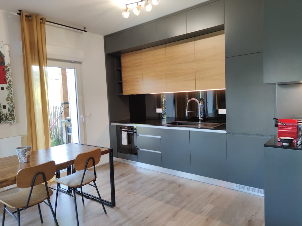 Heillandi hljóðlát og fullbúin íbúð í 100 metra fjarlægð frá Bordeaux-vatni. Nálægt verslunum. Frábær staðsetning: - beinn aðgangur að framhjá - 5 sporvagnastoppistöðvar frá miðborg Bordeaux - 10 mín akstur frá miðborg Bordeaux - 10 mín akstur frá flugvellinum - bein sporvagnalína að St Jean stöðinni Ókeypis að leggja við götuna Þessi íbúð býður upp á öll þægindin sem þú þarft: king-size rúm, 160x200 svefnsófa, loftræstingu, þráðlaust net, sjónvarp, eldhús o.s.frv.