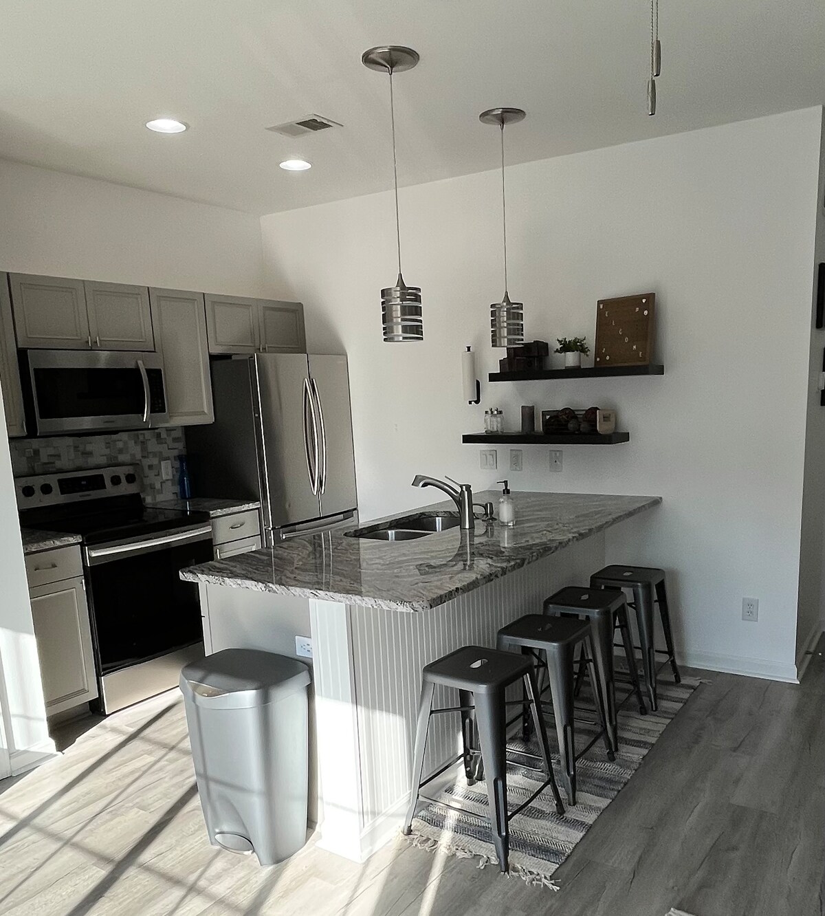 Welcome to the heart of downtown Wilmington, NC! This loft is privately tucked upstairs in the historic Shrier building with so much within walking distance: Steps to coffee, coworking, shopping, and dining 1 block from the Wilmington Riverwalk 2 blocks to Cape Fear Community College 5 min walk to the Convention Center 15 minute walk to the Live Oak Bank Pavilion 3 miles to Battleship NC 7 miles to the University of Wilmington 20 minute drive to Wrightsville Beach, 30 minutes to Carolina Beach!