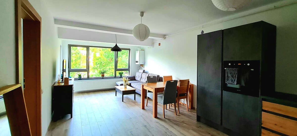 Slakaðu á í nútímalegri og notalegri íbúð með útsýni yfir garðinn, fjarri mannþrönginni. Lengra geymslupláss, fullbúið eldhús, nútímalegt skrifborð eru meðal þess sem gerir dvöl þína afslappaða og ánægjulega á sama tíma. Rétt handan við hornið má finna Profi-matvöruverslun sem er opin allan sólarhringinn, 18 líkamsræktarstöðvar, apótek og matvörumarkað á staðnum. Í 10 mínútna göngufjarlægð er hægt að komast að Iulius-verslunarmiðstöðinni eða í 13 mínútur með strætisvagni upp að miðborg Cluj.