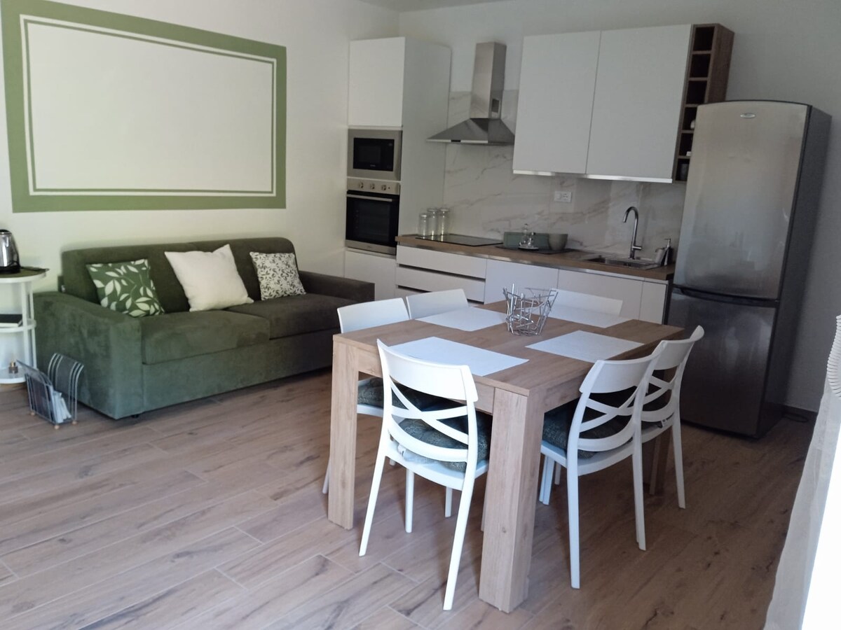 110 fm íbúð með tveimur svefnherbergjum umkringd gróskum en í göngufæri frá miðbæ Chieti Scalo og verslunarstöðvum, háskólum og við erum aðeins 10 mínútur frá sjó. Við bjóðum gestum okkar allt sem þarf til að njóta afslappandi dvöl, allt frá eldhúsinu til salernisins. 42 tommu LED sjónvarp, þráðlaust net, örbylgjuofn, 3 loftkælingar (einn í hverju herbergi) á sumarmánuðum og útisvæði þar sem þú getur borðað. Greiða þarf 0,80 evra á mann á nótt í ferðamannaskatt á staðnum fyrir allt að 5 nætur.