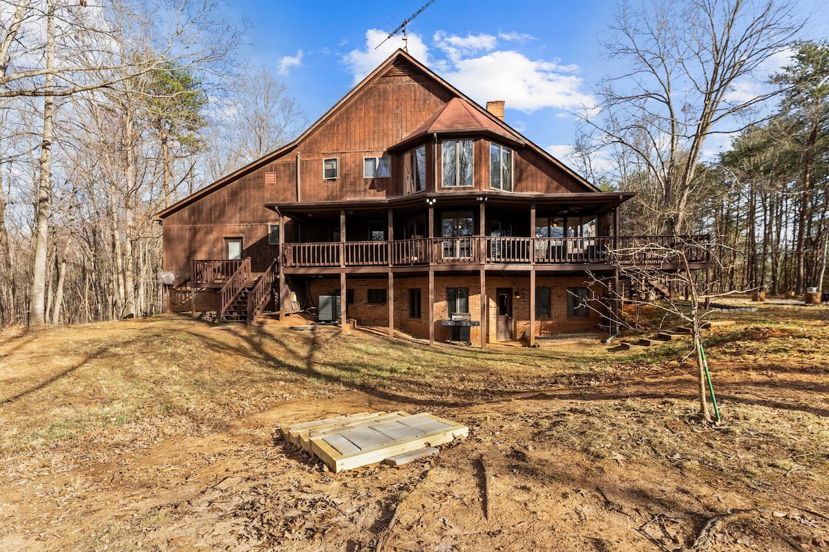 Verið velkomin 🐻Lazy Bear Lodge🐻!! Stökktu út í þetta lúxus, afskekkta 10 hektara undraland! Þetta glæsilega afdrep gerir þér kleift að slaka á og njóta útiverunnar. Slakaðu á á víðáttumiklu veröndinni, við eldstæðið eða skoðaðu gönguleiðirnar. Njóttu spilakassa, billjard og útileikja! LBL er með 3 hæðir, 3 rúmgóð svefnherbergi og 3 baðherbergi. Njóttu fullbúins eldhúss og borðaðu í fágaðri borðstofunni eða á veröndinni með mögnuðu útsýni yfir náttúruna í kring.