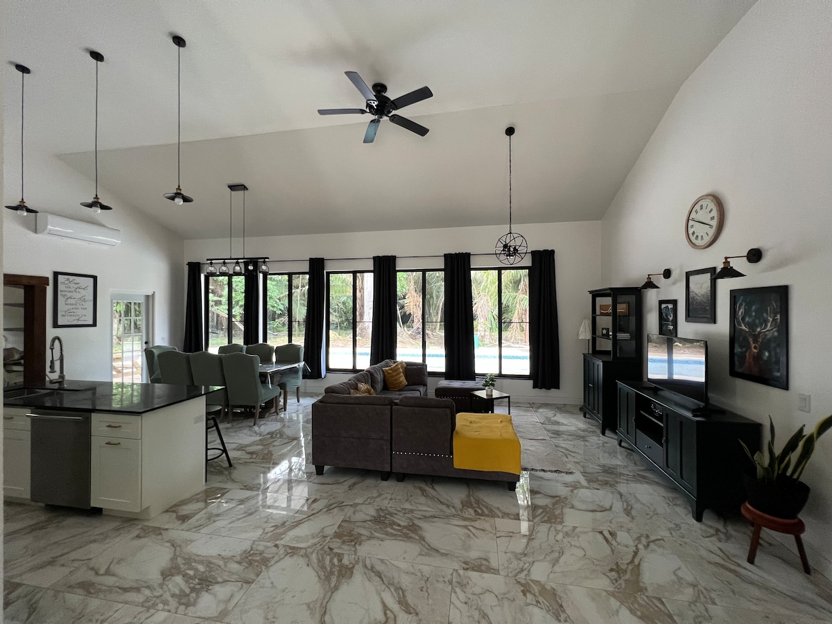 Fallegt 4 herbergja hús, staðsett á rúmum 10 hektara lóð, heimili okkar er fullbúið loftkælingu fyrir þægindi þín. Eitt svefnherbergi er ekki með loftkælingu en það er með glugga og viftu sem veitir þægilega, svölum golu, fullbúið eldhús og þráðlaust net. Þú munt einnig njóta lítillar einkagönguleiðar, fallegs kletts aftast í eigninni og grills. Þessi eign er staðsett í Cayo, í aðeins 5 mínútna akstursfjarlægð frá aðalveginum og í 20 mínútna akstursfjarlægð frá bæði San Ignacio og Belmopan.