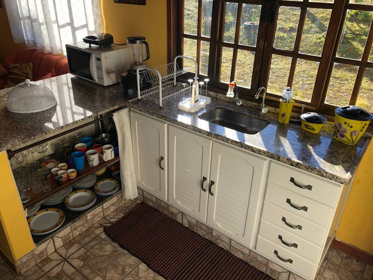 Njóttu einstakrar upplifunar í Serra da Mantiqueira. Recanto Alvorada er einstakt athvarf umkringt náttúrunni með víðáttumiklum palli og 180 gráðu útsýni yfir dalinn þar sem sólarlagið er dagleg sjón. Tilvalið fyrir pör, fjölskyldur eða litla hópa sem leita að ró, þægindum og tengslum við landslagið. Við bjóðum sérstakan afslátt fyrir vikulanga dvöl sem er fullkomin til að njóta lengri tíma og meiri kyrrðar. Njótið þagnarinnar, náttúrunnar og stjörnubjartra næturlaga í þægindum. GÆLUDÝRAVÆN.