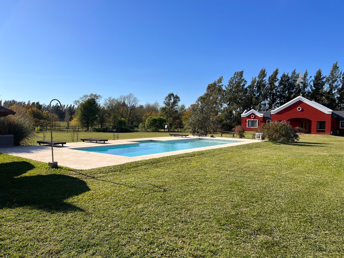 LA MARIA er 8 hektara býli með meira en 1000 trjám staðsett í San Antonio de Areco, 114 km frá Buenos Aires og 3 km frá bænum á vegum. Hámarksfjöldi í aðalhúsinu er 8 fullorðnir. Á La Maria er tennisvöllur úr múrsteinsdufti, sundlaug með palli og hægindastólum, innra og ytra grill, róðrarvöllur, hestar, lömb og hænur.