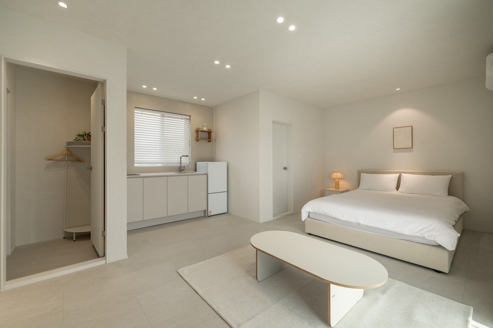 안녕하세요. 저희는 다양한 휴식 공간을 연구하고 제공하는 Onda입니다. 이 곳에서 머무르실 모든 분들께서 편안하고 행복한 시간을 보내기를 바랍니다. [숙소 소개] 사람 많은 곳에서 노는 것에 지친, 일상이 주는 권태로움에 질린 그 모든 분들이 편안하게 쉬어가실 수 있도록, 자연과 함께 조용히 지내는 순간이 필요할 때 가장 보통의 것, 아주 평범한 곳이 특별한 경험이 될 수 있도록 청결과 친절함을 잃지 않는 이 곳에서 편안하고 따뜻한 시간 보내시길 바랍니다. [객실 유형] 원룸형 (더블1+주방+화장실1) * 침구는 예약하신 인원에 맞게 제공됩니다.
