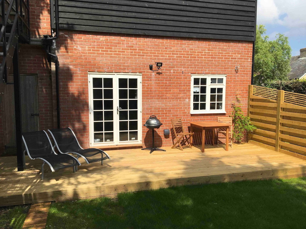 Heimilið okkar er í um 20 mínútna göngufjarlægð frá bænum. Það er indverskur veitingastaður og matvöruverslun hinum megin við götuna, tyrkneskur veitingastaður, kínverskur matsölustaður og veitingastaður við ána innan 10 mínútna. Farðu í yndislega gönguferð um Sudbury-vatnsengjur inn að bænum. Viðbyggingin með útiþilfari er fyrir aftan garðinn okkar með aðgengi í gegnum stiga að bílastæði(afsakið en gestir án fullnægjandi umsagna verða því miður ekki samþykktir) Því miður eru engin gæludýr þar sem við erum með vingjarnlegan kött og 2 hunda á ferð um garðinn