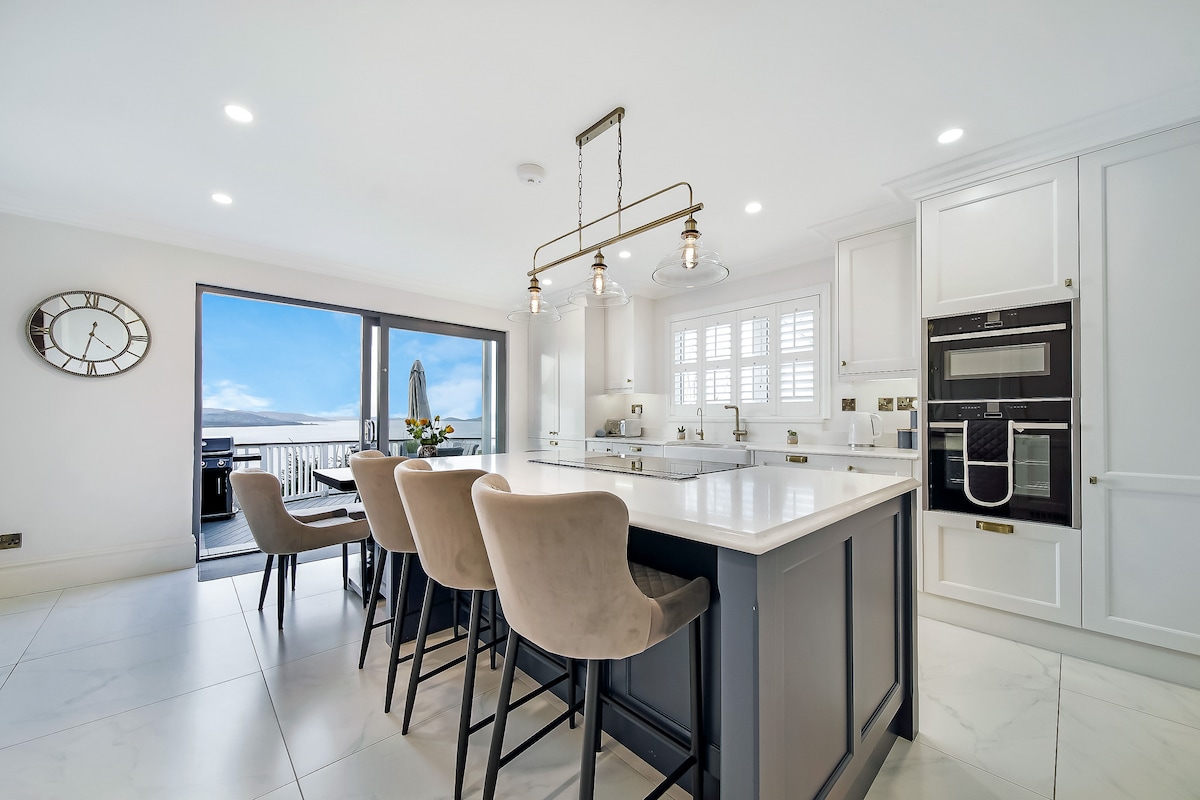 Útsýni!! Magnað bjart og nútímalegt heimili með mögnuðu útsýni í rólegu hverfi. Við getum tekið á móti 10 gestum með 5 svefnherbergjum og 2 baðherbergjum. Húsið er stílhreint og þægilegt. Opið eldhús og stofa með stórum gluggum frá gólfi til lofts og rúmgóðri verönd fyrir sumardaga. Fullkomin staðsetning fyrir golfara, fjölskyldur og vinahópa. *Afsláttur er notaður fyrir 7 daga gistingu* Staðsett í hlíð milli Fahan og Buncrana á hinum fallega Inishowen-skaga í Donegal.