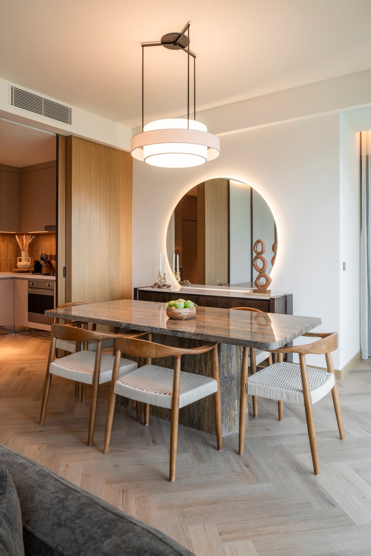 Verið velkomin í tveggja svefnherbergja húsnæði okkar í Seraya í Opera Residences þar sem þægindi heimilisins mæta 5 stjörnu gestrisni. Þessi glæsilega íbúð er staðsett í hjarta miðbæjar Dúbaí, beint á móti Dúbaí-óperunni, með yfirgripsmikið útsýni yfir Burj Khalifa og Dubai-gosbrunninn. Hún er hönnuð með sérsniðnum innréttingum og er með rúmgóða stofu, fullbúið eldhús og glugga sem ná frá gólfi til lofts sem sýna sjóndeildarhring Dúbaí. Fáguð gisting þar sem stíll, þægindi og staðsetning koma saman áreynslulaust.