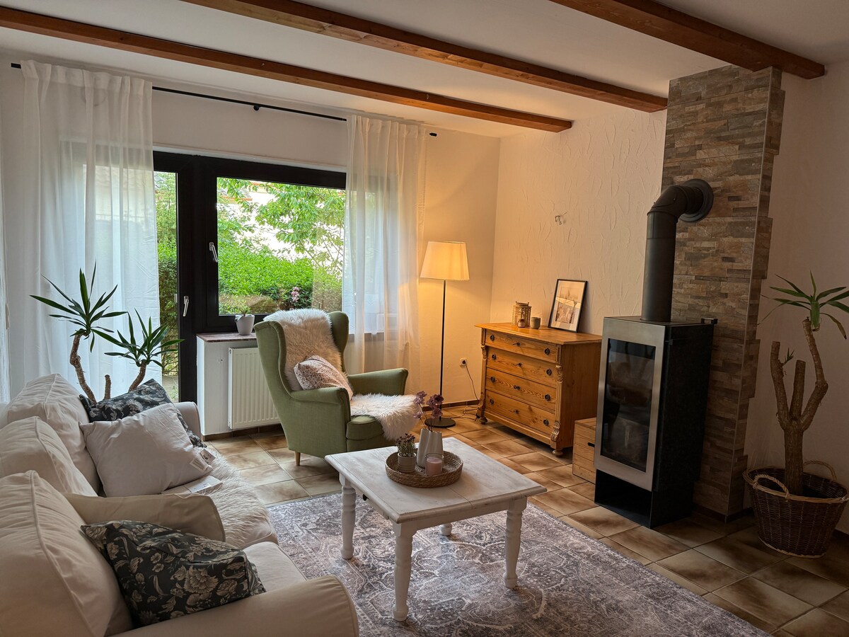Verið velkomin í friðsælu og vinalegu íbúðina okkar nálægt skóginum og akrinum. Í íbúðinni er fullbúið eldhús, þvottavél og þurrkari ásamt vinnuaðstöðu. Miðlæg staðsetningin í miðri Þýskalandi er góð fyrir flutninga. Svæðið er með fjölmarga hjólreiða- og göngustíga þar sem þú getur slakað á í náttúrunni. Sassen/Richthof-samfélagið er aðeins í 7 mínútna fjarlægð með bíl. Matvöruverslanir eru í 10 mínútna fjarlægð með bíl.