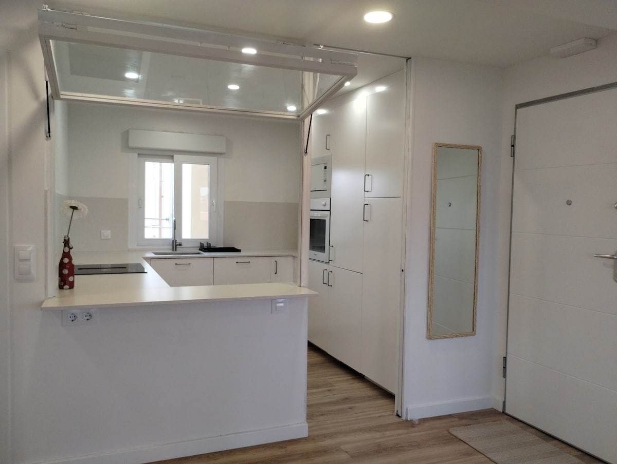 Endurnýjuð íbúð | Loftkæling | Lyfta | Bílastæði. Kynnstu þessari glæsilegu og nýuppgerðu íbúð sem er hönnuð til að bjóða upp á þægindi, stíl og fullkomna staðsetningu nálægt miðbænum. 2 þægileg svefnherbergi, 1 nútímalegt baðherbergi + 1 salerni. Loftkæling. Notaleg stofa með fullbúnu eldhúsi Bygging með lyftu og endurnýjuðum inngangshúsi Ókeypis almenningsbílastæði beint fyrir utan bygginguna. Frábær staðsetning til að skoða borgina fótgangandi, með veitingastöðum og verslunum. Rólegt og vel tengt svæði.