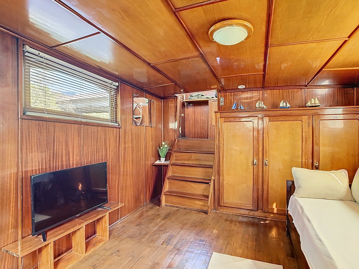 Cet hébergement insolite flottant de 50m2 s'inscrit dans le cadre du "Bateau Lavoir La34S." . Il offre la flexibilité de loger 2 à 4 personnes et va certainement vous séduire par le contraste entre originalité, confort et son amarrage privilégiée au bout du quai amont de l'écluse en pleine nature. Chambre avec grand lit (160x200) et salle de bain (douche, lavabo, WC séparré). Salon avec sofa/lit (160x200), fauteuil, table, cuisine bien équipée. Terrasse couverte aménagée, terrasse à quai.