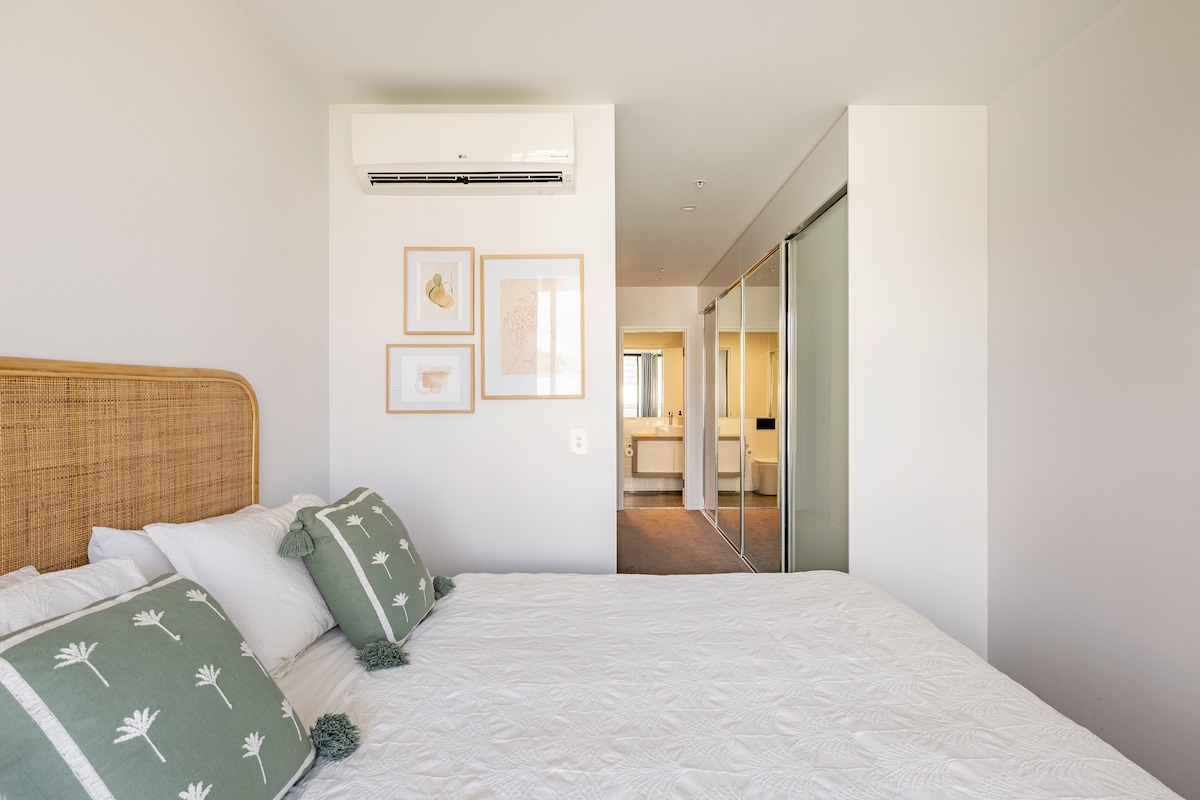 Þessi heillandi strandbústaður er aðeins 250 metrum frá hinni táknrænu Burleigh-strönd og er staðsettur á meðal líflegra veitingastaða, kaffihúsa og strandmenningar. Njóttu rúmgóðra einkasvala með hitabeltisinnréttingu ásamt borðstofu í boho-stíl, setustofu og grillsvæði; fullkomið fyrir afslöppun. Þú verður einnig með fullbúið eldhús en staðbundnir matsölustaðir gætu freistað þín! Eftir dag á ströndinni getur þú slappað af í einkakokkteilstofunni þinni með einum eða tveimur drykkjum og notið stemningarinnar við ströndina.