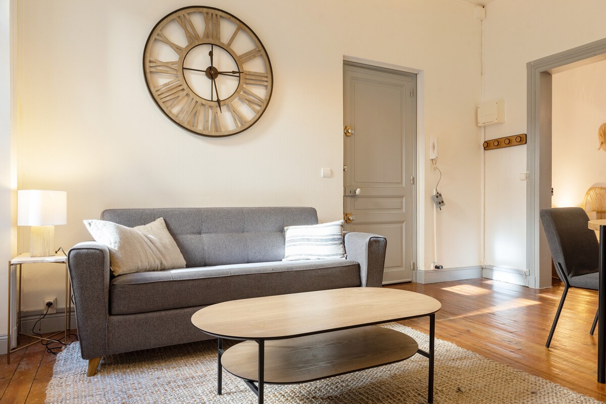 Þetta gistirými býður upp á greiðan aðgang að ómissandi stöðum borgarinnar: 300 m frá lestarstöðinni (4 mínútna ganga) og 1 km frá Galeries Lafayette (12 mínútna ganga). Þessi íbúð er tilvalin fyrir atvinnu- eða ferðamannagistingu. Hann er hannaður fyrir fjóra og er með eitt svefnherbergi með queen-rúmi og svefnsófa. Eldhúsið er útbúið (spanhelluborð, ofn, örbylgjuofn, kaffivél, ísskápur/frystir) og á baðherberginu er þvottavél og þurrkari.