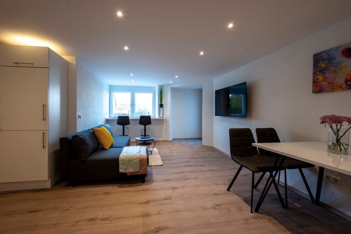 Björt 1 herbergja íbúð með 45m2 - tilvalin staðsetning nálægt Memmingen, alveg við A7 Þessi vel við haldið 1 herbergja íbúð með um 45 fermetra íbúðarrými býður upp á nóg pláss og sveigjanleika á litlu svæði. Rúmgóð stofa og svefnaðstaða er tilvalin fyrir litlar fjölskyldur, innréttingar og fólk sem ferðast milli staða. Íbúðin er staðsett nálægt Memmingen, með beinan aðgang að A7, fullkomin fyrir alla sem þurfa að vera hreyfanlegir 1 klst. til München 1 klst. til Stuttgart 45 mín til Bodensee