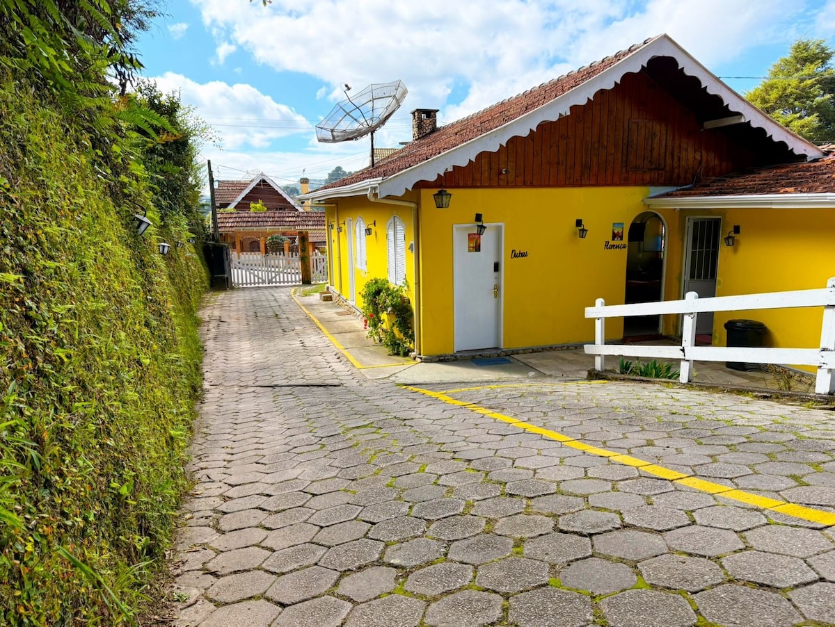 Chalé romântico, 5 min centro, ar cond e hidro.