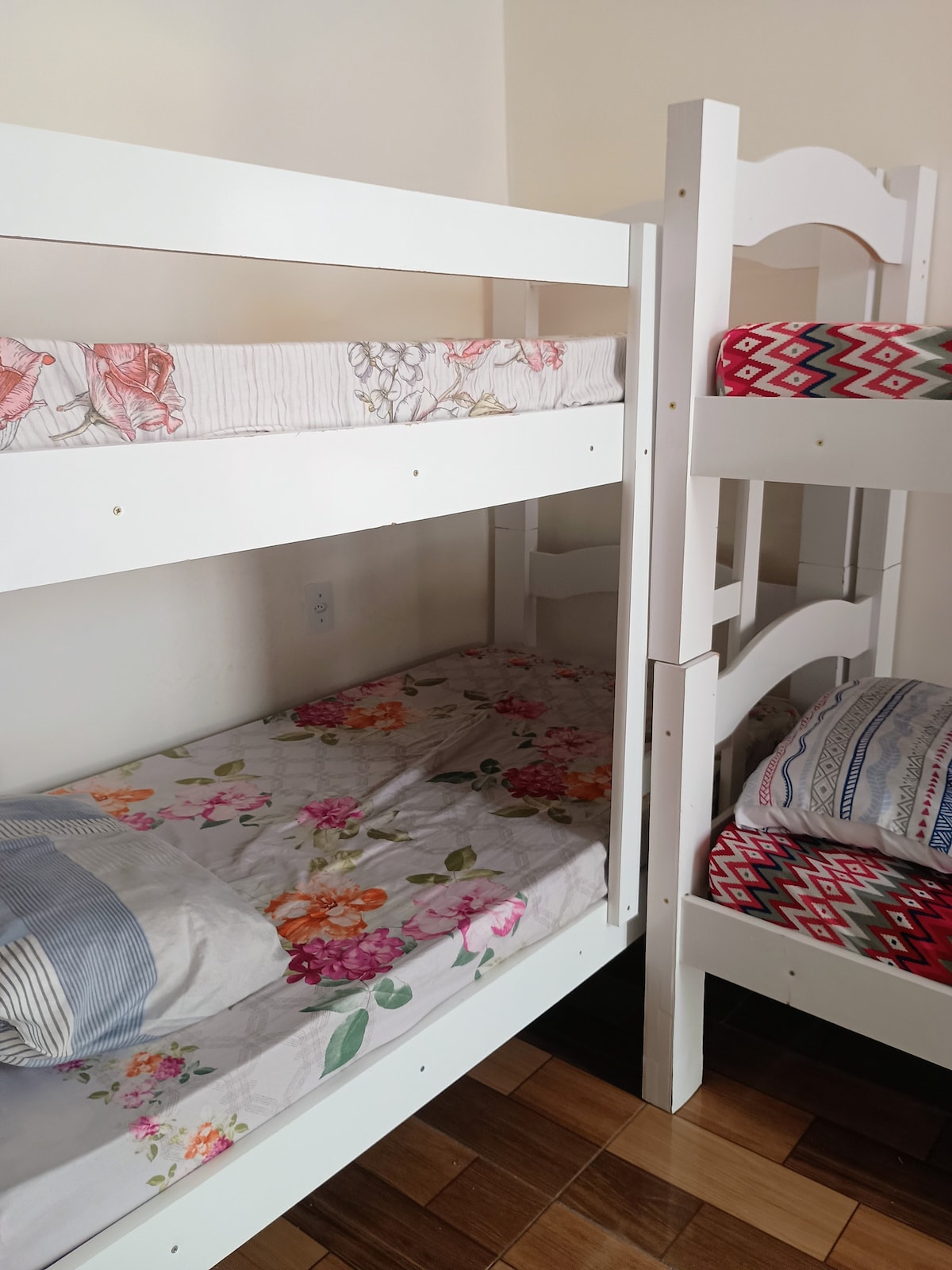 Suíte com 1 cama de casal e duas beliches, contendo frigobar, ar condicionado, TV, wi-fi e roupa de cama.