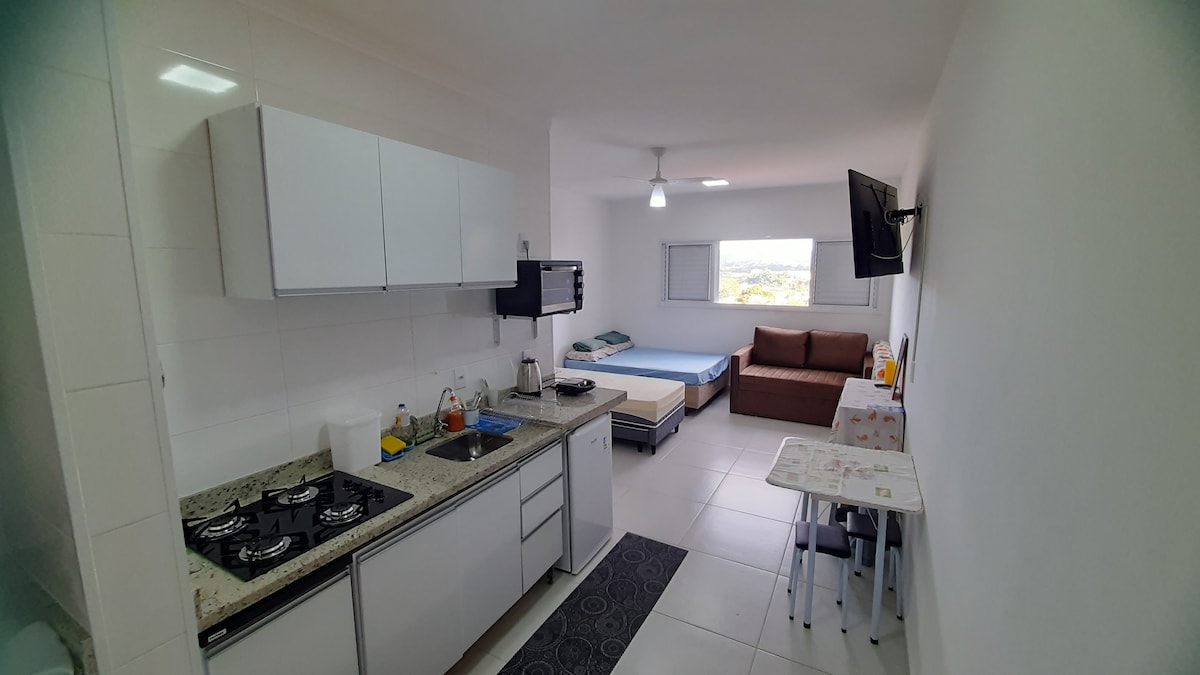 Studio para locação, localizado no Condomínio da Fé em Cachoeira Paulista - SP, no 11° andar, com portaria 24h, a 10 min de distância a pé até a Canção Nova, facilitando sua participação nos seus eventos favoritos, próximo de restaurantes e da famosa feirinha de artigos religiosos. Também há mercado, farmácia, posto de gasolina, bancos e lotéricas nas proximidades. Um espaço inteiro com dois ambientes, móveis e eletrodomésticos novinhos.
