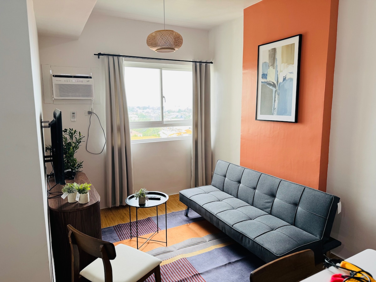 Verið velkomin í vinina sem er staðsett í hjarta miðbæjar Cagayan De Oro-borgar! Við hönnuðum þessa svítu vel til að bjóða upp á afslappandi stemningu sem gerir hana að fullkomnum stað til að slappa af. Slakaðu á í þægilegum sófanum , njóttu kvikmyndar í snjallsjónvarpinu í svefnherberginu eða fylgstu með vinnunni í sérstaka vinnurýminu. Þú getur einnig útbúið uppáhaldsmáltíðirnar þínar í eldhúskróknum okkar með örbylgjuofni, ísskáp, katli og eldunaráhöldum. Njóttu máltíða þinna í friði á notalega borðinu okkar fyrir fjóra.