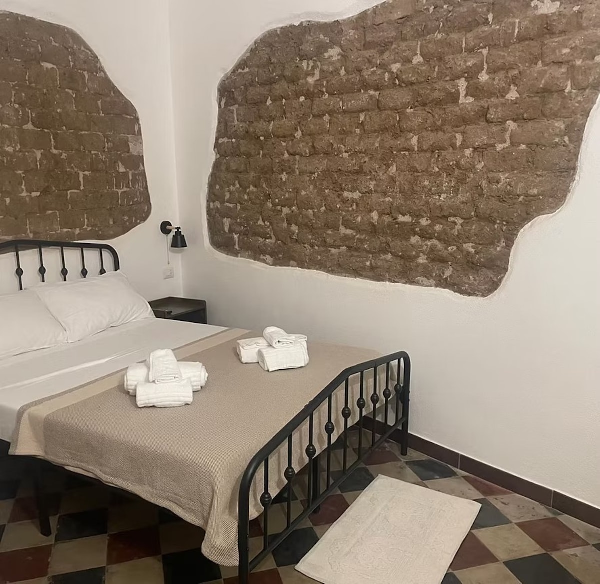 Located on the 6th floor of the Solì Suite & Rooms guesthouse in Via Sonnino 139, the Rustyflower Suite is a refined open space of about 20 m², designed to offer an exclusive stay experience in the heart of Cagliari. The bright and welcoming environment combines modern design and artistic details : the wall decorated in copper and petroleum blue tones creates a warm and sophisticated atmosphere, ideal for those looking for charm and comfort.
