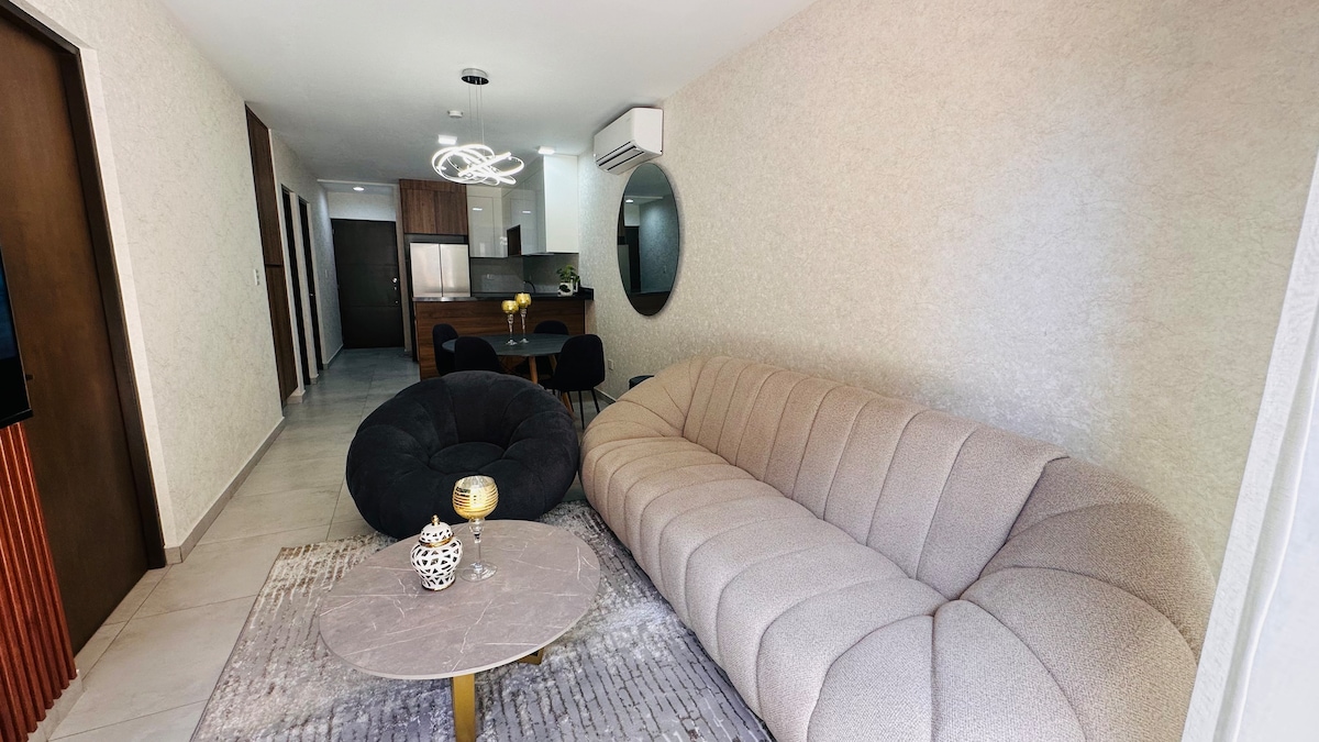 Njóttu lúxusgistingar í BLÓMA, nútímalegri íbúð með glæsilegri hönnun, loftræstingu, háhraða þráðlausu neti, snjallsjónvarpi, vel búnu eldhúsi og aðgangi að sundlaug. Frábært fyrir viðskiptaferðir, paraferðir eða fjölskylduferðir. Staðsett á einu öruggasta og miðlægasta svæði Culiacán. 1 mínútu frá Plaza Ceiba og Costco Culiacán.