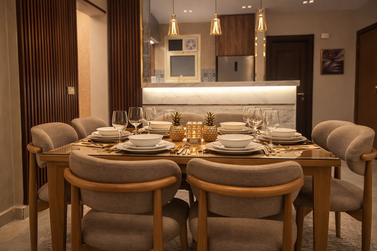 Stay 10 Nights & Enjoy a Free Felucca Nile Ride! Uptown Cairo city center, perfect for business or leisure. Our newly refurbished property boasts a bright, cozy layout with large windows and stunning golf & city views. Inside, a comfy living & dining area, a modern kitchen with high-end appliances, elegant bedrooms with en-suite bathrooms, and a versatile study/office. Just steps away, get free access to a gym, swimming pool, jacuzzi, lounge, and children's playground.