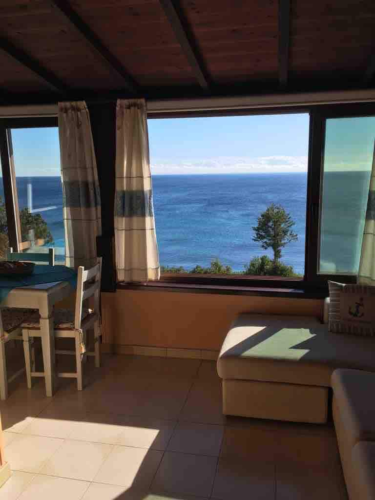 Falleg íbúð sem fær þig til að láta þig dreyma með augun opin! Tilvalið fyrir fríið eða lengri dvöl eða snjallvinnu. Ímyndaðu þér að vakna á hverjum morgni með 360 gráðu útsýni yfir hafið og klettóttar hæðir í kring. Héðan getur þú notið fegurðar náttúrunnar og stórkostlegs útsýnis. Ef þú ert að leita að töfrandi stað til að slaka á og endurnýja, vinna, njóta lífsins og lifa ógleymanlegri upplifun, þá er þetta hið fullkomna val fyrir þig. Bókaðu núna og komdu til að lifa draumafríinu þínu!“