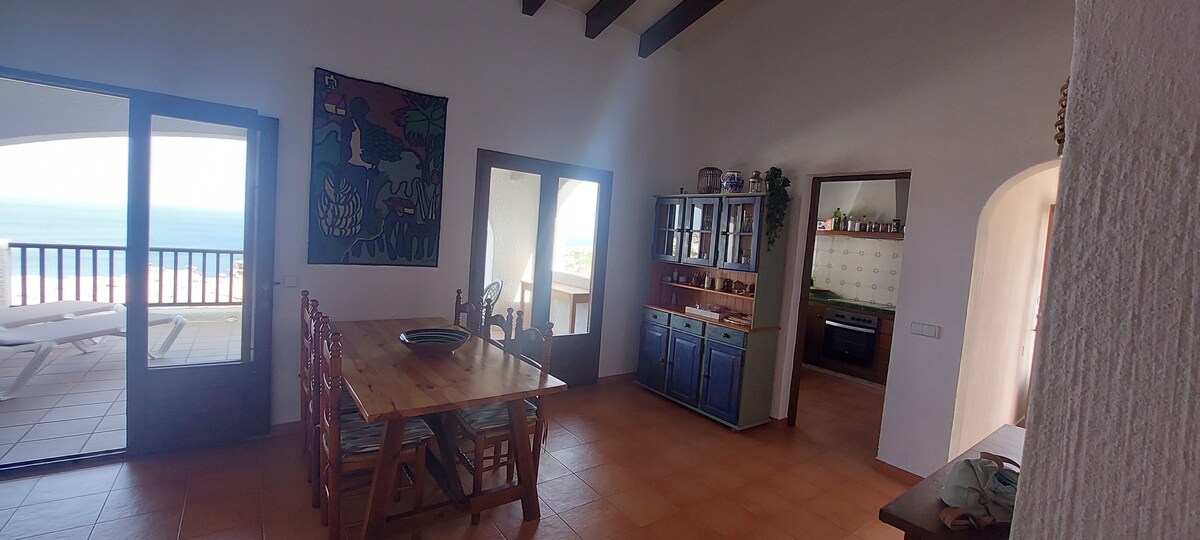 Arkitektúrhönnuð íbúð með óviðjafnanlegu útsýni á kletti Calan Porter, South Coast, Menorca. Einstök eign, hönnuð af einum vinsælasta arkitekt Menorca. Eignin er með vönduðum frágangi, hún er fullkomin og fjölbreytt, stofan, eldhúsið og veröndin eiga í fullkomnum samskiptum til að hámarka útsýnið yfir eignina, andstæðan milli grænbláa hafsins og appelsínugulu sólsetursins er mögnuð.
