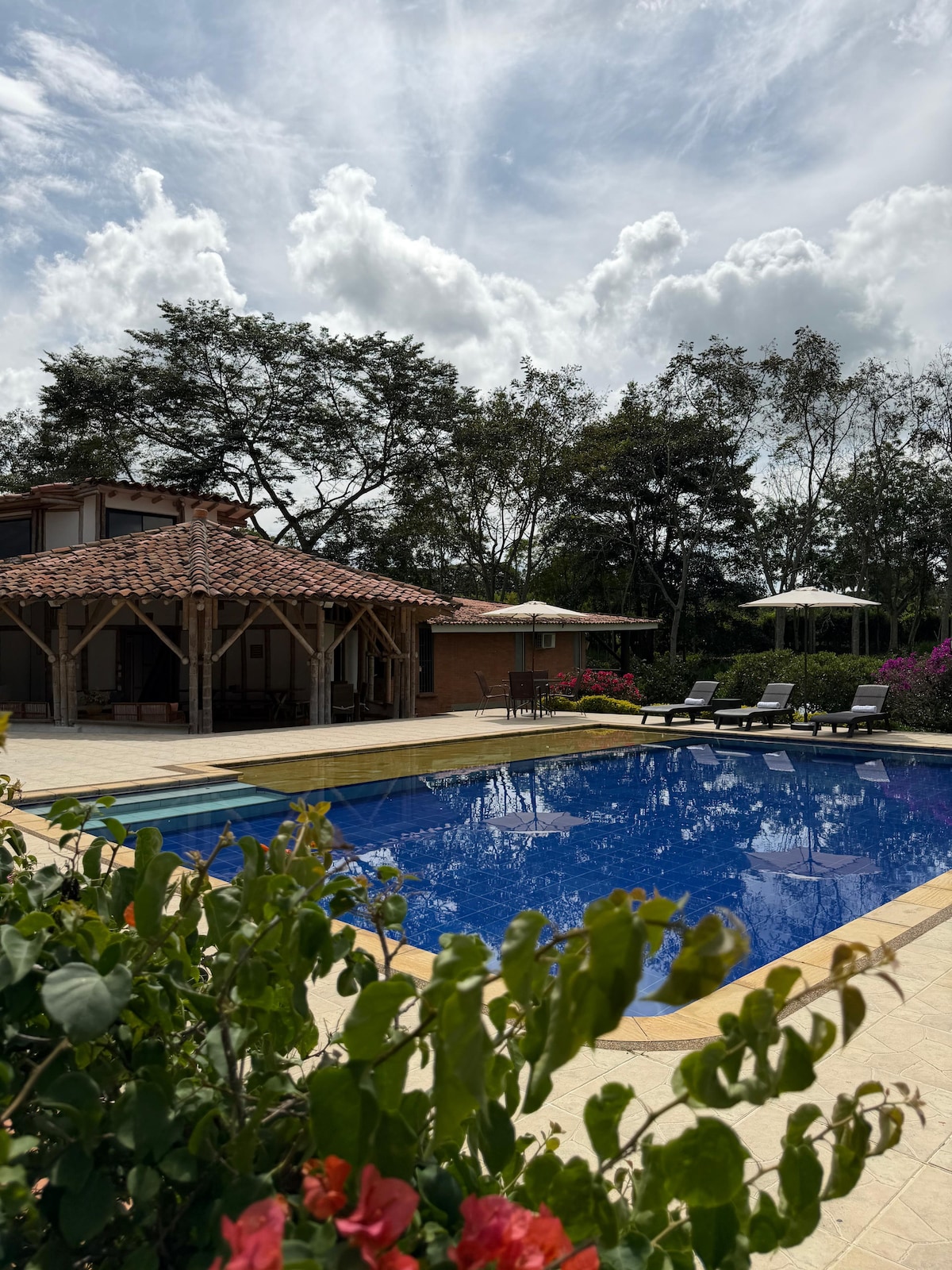 Country House in Pereira, Sector Cerritos, Easy Access. You will enjoy sunny days, tranquility, connection with Nature, and beautiful sunsets. Overlooking a spectacular guadual. Located 15 minutes from the International Matecaña Airport, with an excellent location to places of interest in the Coffee Region; 5 minutes from the best food malls in the city, supermarkets. Perfect place to enjoy with the family. With heated Jacuzzi, BBQ area, wood oven for pizza. Campfire area. Pet Friendly.