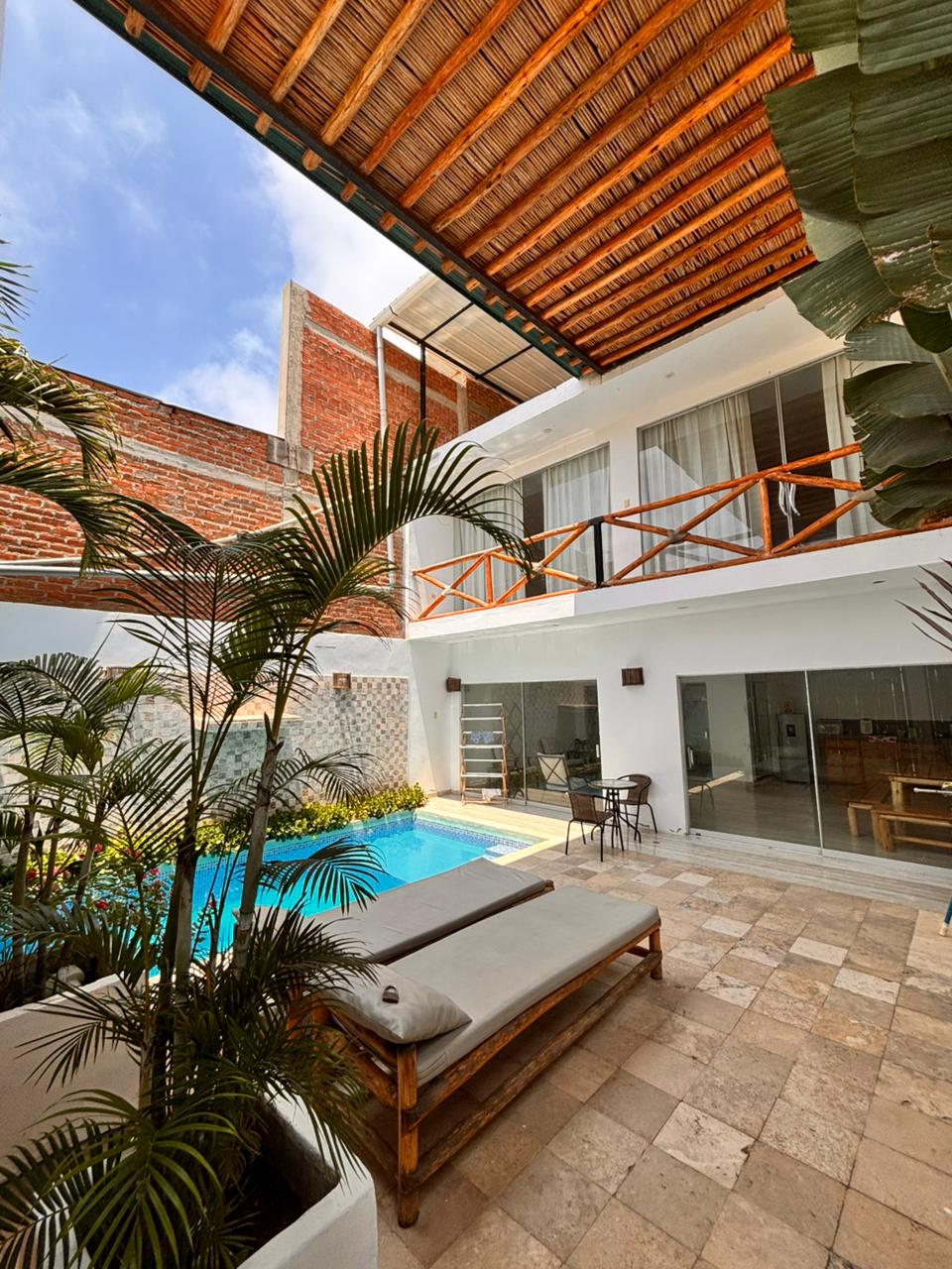 Norður-Paradís - Casa El Almirante Vaknaðu við sjóinn við Casa El Almirante, villu við ströndina í Zorritos með einkasundlaug, verönd með sjávarútsýni og fullu starfsfólki. Það er fullkomið fyrir fjölskyldur eða hópa (allt að 14 gesti) og býður upp á rúmgóðar stofur,þráðlaust net, snjallsjónvarp, fullbúið eldhús og valfrjálsa eldunar- og hreingerningaþjónustu. Njóttu þæginda, næðis og ölduhljómsins. Fullkomið strandfrí í norðurhluta Perú.