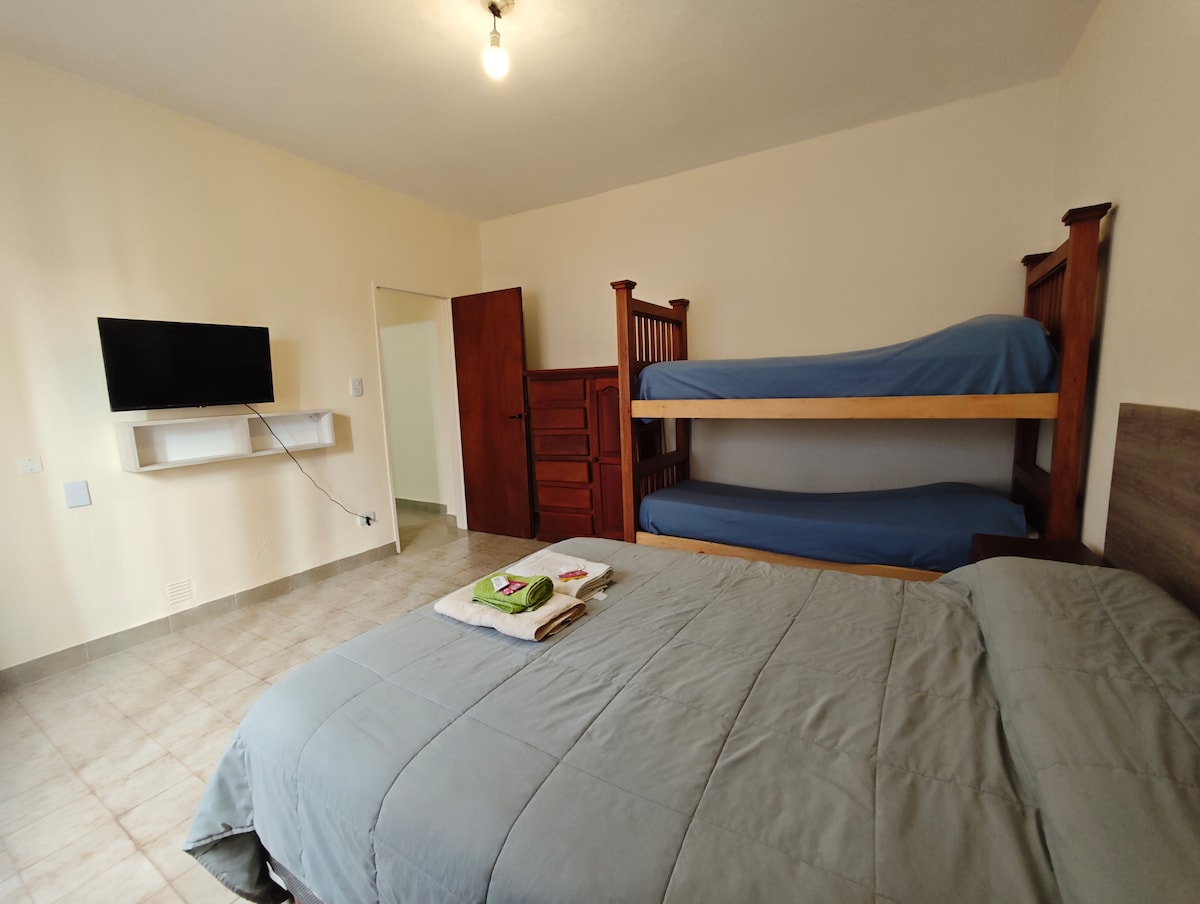 Njóttu friðsældar Caleta Olivia í þessari notalegu kofa, tilvalin til að hvíla sig eftir göngu eða vinnu. Eignin er með þægileg, fullbúin herbergi, náttúrulegt birtu og smáatriði sem gera dvölina hlýlegri. Staðsett á rólegu svæði og með greiðum aðgangi, það er fullkomið fyrir bæði ferðamenn og viðskiptaferðamenn. ✔ Útbúið eldhús ✔ Þráðlaust net ✔ Björt rými Hægt að ✔ leggja Eign sem er hönnuð þannig að þú þurfir ekki að gera neitt nema slaka á