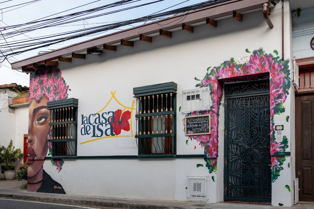 Njóttu ósvikinnar upplifunar í hefðbundnu herbergi í nýlendustíl hjá La Casa de Isa. Þetta er fullkominn afdrep fyrir ferðalangapör; herbergið er með queen-size rúmi, sérbaðherbergi, fataskáp og snjallsjónvarpi. Hlýlegt og notalegt andrúmsloft borgarinnar lætur þér líða vel á meðan þú röltir um litríkustu götur Cali. Fullkomið fyrir ferðamenn sem leita að þægindum, góðri stemningu og ósviknum stað í hjarta San Antonio.