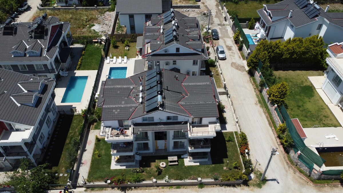 Þú getur skemmt þér með fjölskyldunni á þessum dásamlega stað. 🤗🌸 Uppáhald hjónanna okkar í brúðkaupsferð 😍 Sundlaugin okkar er upphituð. ✨ Sundlaugarhitun er innifalin í verðinu (janúar-febrúar-mars) Í apríl og maí er hitun í boði gegn beiðni fyrir 1.000₺ á nótt Markaðir eru í 250 metra fjarlægð. Bensínstöð er í 200 metra fjarlægð 5-7 km frá miðbænum. 15 km til Oludeniz 25 mín Þú getur notað malbikið með hugarró.
