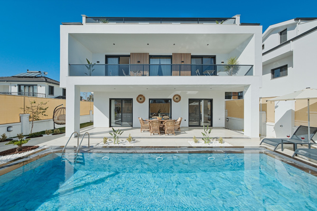 Villa ionX ; Villan okkar er staðsett í Ovacık, Fethiye og býður upp á gistirými fyrir 6 manns með 3 svefnherbergjum. Villan okkar, sem þú getur látið fara vel um þig og býður upp á lúxusbúnaðinn, skarar einnig fram úr með þægilegum samgöngum. Ef þú vilt getur þú kælt þig í rúmgóðri, stórri, nútímalegri sundlaug, slakað á í gufubaðinu, sötrað drykkinn í baðkerinu og átt notalega stund á minigolfvellinum. Ionx, sem opnaði dyr sínar fyrir gestum sínum árið 2025, býður þér ógleymanlega hátíð