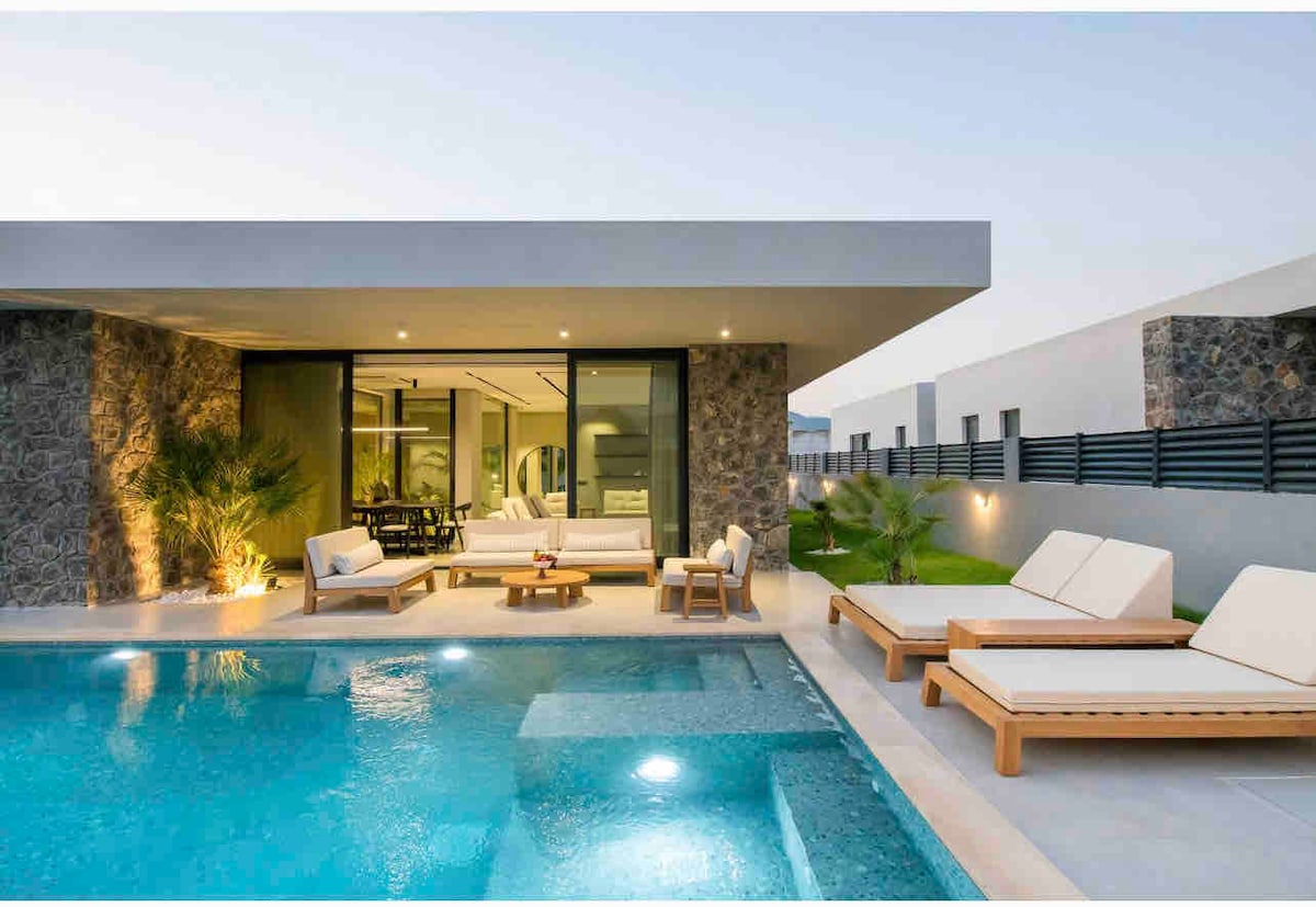 New Ultra Luxury "La Marbella Villa" in Oludeniz, Fethiye Stórkostleg nútímaleg lúxusvilla, nýbyggð, í forréttindahverfi Fethiye, í hjarta hins gróskumikla græna Hisaronu og með útsýni yfir hið magnaða Babadag-fjall. La Marbella Villa minnir á fallegu heimilin á Suður-Spáni og veitir lúxus. Við höfum hannað villuna okkar með hágæða og lúxusþægindum svo að öllum líði sem best og eigi draumahátíðina.