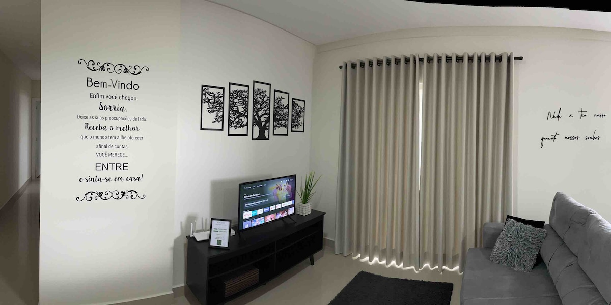 Nýuppgerð íbúð,allt í postulíni, fínt skreytt, amerískt eldhús með ísskáp,skápum, Cooktop,ýmsum áhöldum í boði. Herbergi með skrifborði , skiptri loftkælingu,ÞRÁÐLAUSU NETI, kapalsjónvarpi, hárþurrku, fataskáp o.s.frv. Íbúðin býður upp á tómstundasvæði með líkamsræktarstöð, gufubaði og sundlaug.Flat staðsett á göfugasta miðsvæðis Londrina . Þetta er tækifærið þitt til að gista í hágæða íbúð í frábæru íbúðarhúsnæði.