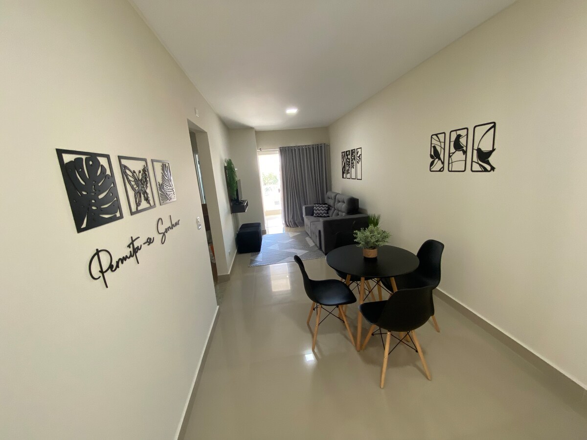 Íbúð staðsett í öruggri íbúðarbyggingu þar sem þú og fjölskylda þín getið gist og notið Apucarana! 2 svefnherbergi: 1 hjónaherbergi og 1 einstaklingsherbergi. (Rúmföt og handklæði eru þegar innifalin) 1 baðherbergi með Lorenzetti-sturtu og -klefa. Þvottahús með vaski og litlu rými til að þurrka föt. Einföld stofa með snjallsjónvarpi. Skipulagt eldhús með ísskáp, ofni og grunnáhöldum. Yfirbyggður bílskúr. Athugaðu: Íbúðin verður afhent hrein og skipulögð. Aukinn þrifþjónusta er innifalin fyrir leigu í meira en 10 nætur.