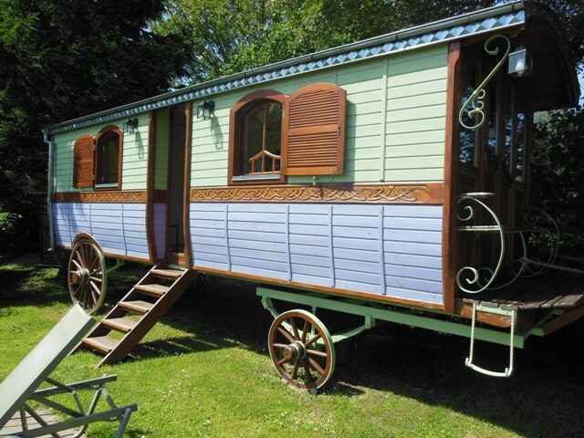 Une roulotte toute neuve, réalisée dans les règles de l'art par 15 artisans roumains, vous attend au jardin de la maison d'hôtes il était une fois pour un séjour bohème inoubliable. Le petit déjeuner est en supplément si vous le souhaitez : 10€/personne.