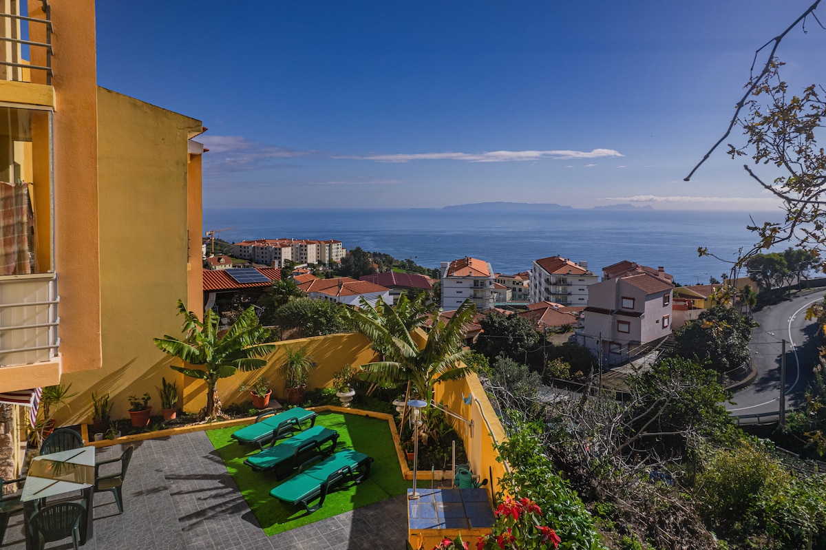 Þessi íbúð er staðsett, í hlíð, á háu svæðunum, austan við Funchal. Með heillandi útsýni yfir Atlantshafið, sem liggur yfir Funchal, upp til fjalla. Vafalaust forréttindi að sjá þetta frábæra landslag frá svölunum í íbúðinni sjálfri. Hér býð ég upp á rólegt rými sem býður upp á afslöppun og vellíðan með einstökustu sólsetri sem sést hefur.