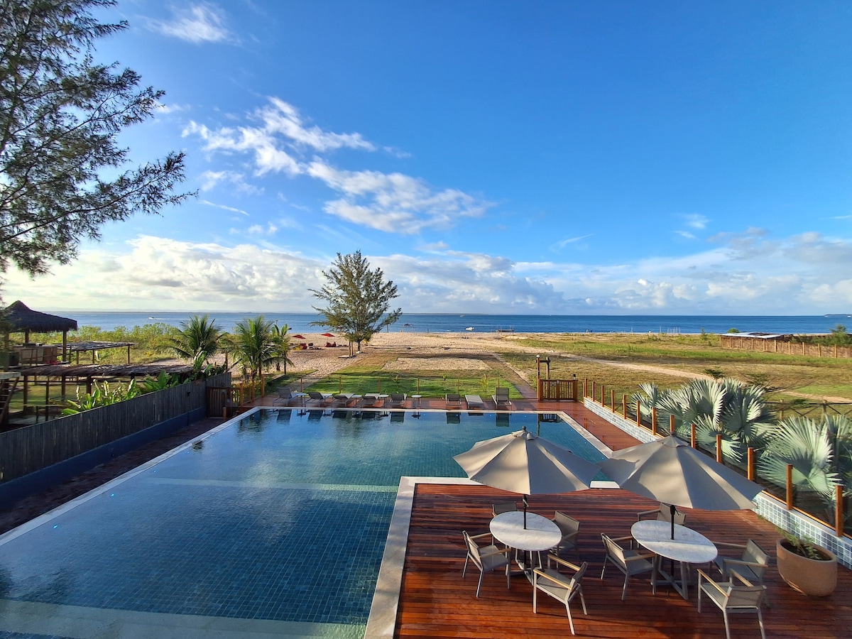 Ocean Bliss Retreat er fullkominn staður við ströndina við Cassange Beach. Það er staðsett í 30.000 m² grænni íbúð með 3 sundlaugum, líkamsræktarstöð, tennisvöllum, strandtennis og bar og veitingastað við sjávarsíðuna. Í húsinu eru 2 notalegar svítur, stofa og verönd með mögnuðu sjávarútsýni. Fullbúið eldhús með klakavél og bjórísskáp tryggir þægilega og lúxusgistingu.