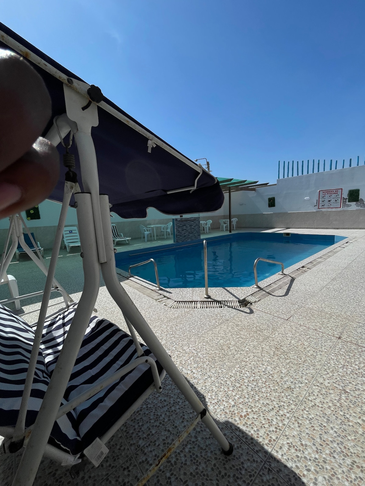 Ven y disfruta del verano en un cómodo departamento en nuestra casa de playa! 🌊☀️🏝️A solo 4 min del mar, este cálido departamento en el primer piso será el lugar perfecto para tus vacaciones ☀️ • Hermosa piscina con cascada, • Desarenador, • Comedor y cocina americana, • Cochera, • Lavandería, además de agua 24/7 (con tanque de respaldo 😉) *Hacemos videollamada para mostrar el depa*