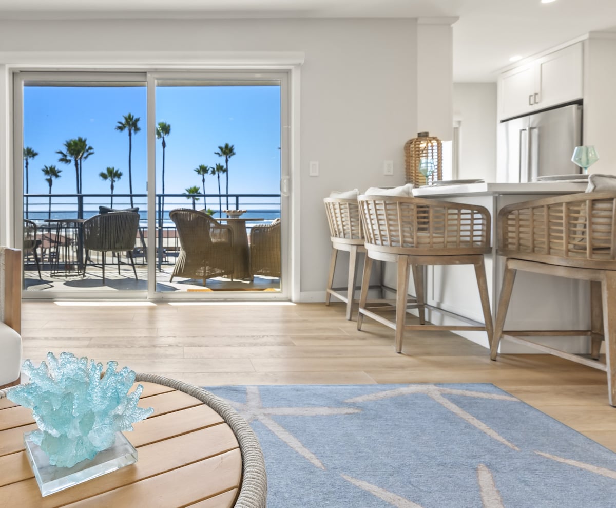 Vaknaðu með glitrandi sjávarútsýni og mildum sjávarblæ í þessum griðastað við ströndina þar sem nútímaþægindi mæta blíðu við ströndina. Þetta úthugsaða afdrep er aðeins í blíðskaparveðri frá sólarströndum Oceanside og býður þér að slaka á með stæl. Röltu eða hjólaðu að ósnortnum ströndum á daginn og kynnstu svo líflegum veitingastöðum hverfisins á kvöldin. Fullkomið frí við ströndina bíður þín. Hvert sólsetur er eins og einkasýning.