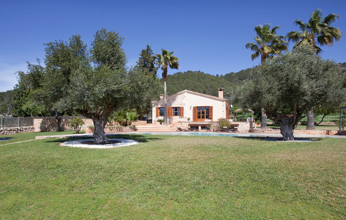 Rólegt og afslappandi útisvæði þökk sé sundlauginni og veröndinni með fallegu útsýni þar sem hægt er að grilla ljúffengt. Aðgengi að húsinu á bíl og á eigin bílastæði. Húsið samanstendur af hefðbundnum inngangi frá Mallorcan, stofu með arni og fullbúnu eldhúsi. Tvö tvíbreið svefnherbergi. Baðherbergi með þvottavél og þurrkara. Upphitun, loftræsting og ÞRÁÐLAUST NET um allt húsið. Ég býð upp á gistingu sem hentar pörum, ævintýrafólki, fjölskyldum (með börn).