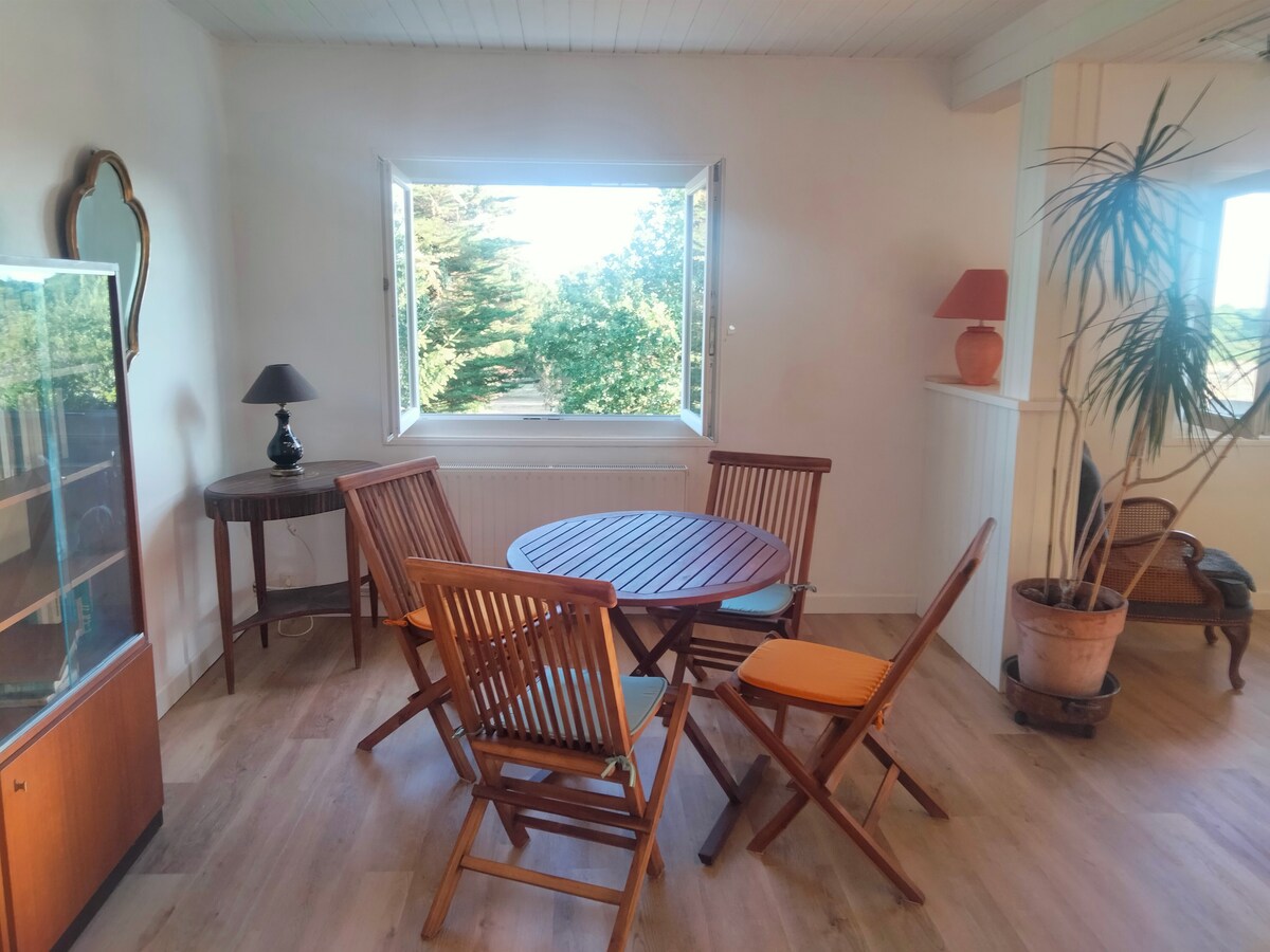 Þessi bústaður við hliðina á húsinu okkar tekur fúslega á móti þér með fjölskyldu eða vinahópum. Hann er tilvalinn fyrir 5 manns en rúmar þig við 7 manns. Friðsælt, 35 mínútur frá Nantes, 40 mínútur frá fallegu ströndum Pornichet, La Baule, 40 mínútur frá miðaldaborginni Guérande, 45 mínútur frá fallegu höfnum Le Croisic eða Piriac eða 1 klukkustund frá Vannes. Sannkallaður griðarstaður fyrir þá sem kunna að meta kyrrðina. Þú verður mjög nálægt Savenay (5 km) og La Colleraye verslunarsvæðinu