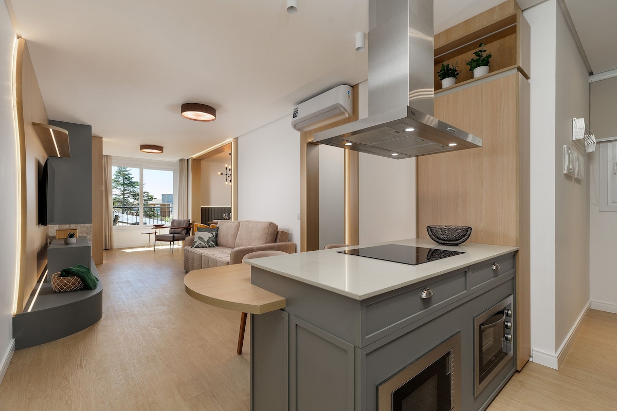 Í hjarta Moinhos de Vento finnur þú 49m ² hágæðapláss við TREND 24. Heillandi og þægileg loftíbúð, staðsett á hárri hæð, veitir magnað útsýni yfir borgina. Búin nútímalegu eldhúsi (spaneldavél, örbylgjuofni og vatnssíu), þvottavél og þurrkara, 55"sjónvarpi, 43" sjónvarpi og alltaf FERSKU Nespresso-kaffi. Njóttu tómstunda byggingarinnar: sundlaugar, líkamsræktaraðstöðu og fundarherbergja. Öryggisgæsla er í boði allan sólarhringinn. Allt eitt skref í burtu: verslanir, veitingastaðir og fleira. Tilvalið fyrir tvo einstaklinga.