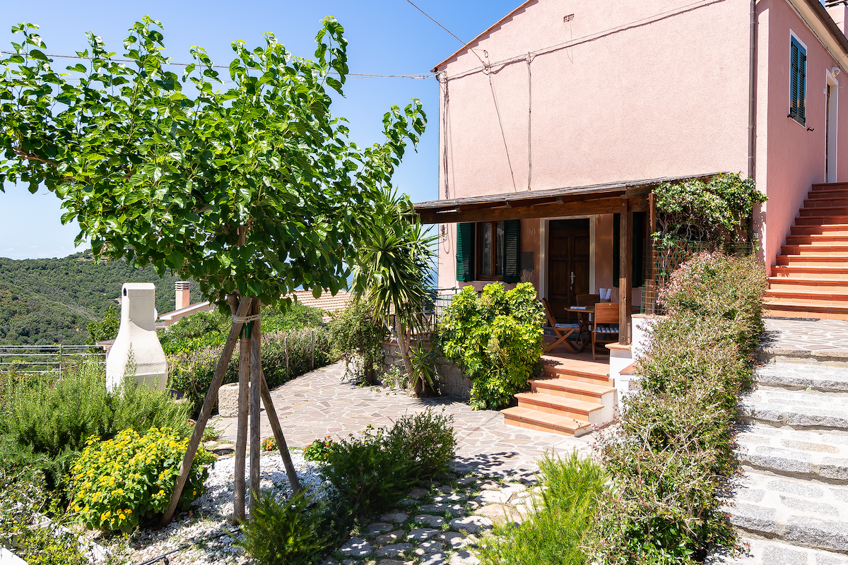 Bilocale in villetta di 70mq in splendida posizione in collina tra Marina di Campo e la magnifica spiaggia di Galenzana nel meraviglioso parco dell'Arcipelago Toscano. L'appartamento vista mare è composto da un ampio salone con due divani letto, uno da una piazza e uno da due. é presente un'ampia cucina e camera con letto matrimoniale. Dispone di posto auto privato esterno. Dalla casa é possibile raggiungere a piedi in cinque minuti due spiaggie: Marina di Campo e Galenzana.