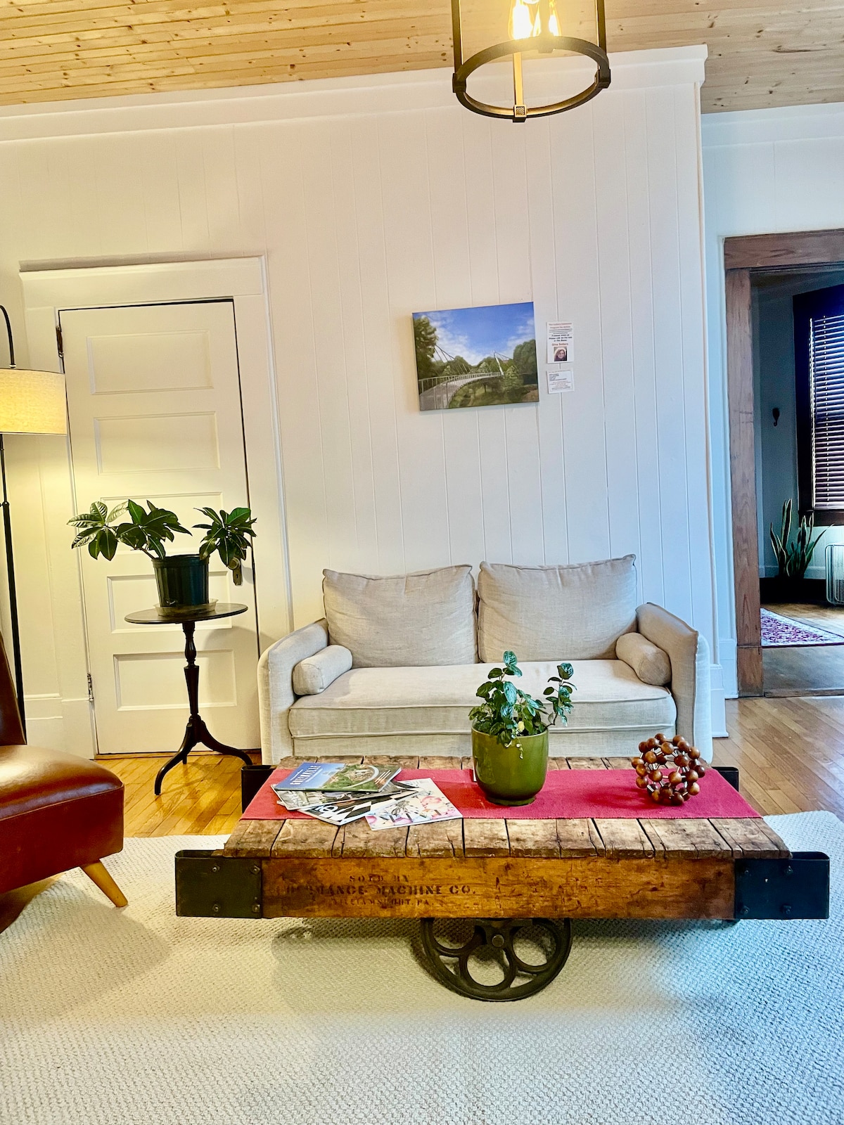 Visit TIEC (5mi) and NC foothills in a modern and cozy studio that sleeps up to 3 adults (or 2 adults and 2 children). The cottage features a recently renovated interior with queen bed, sleeper sofa, luxury linens, well equipped full size kitchen & laundry. Private fenced yard with sitting area, chiminea, and gas grill. Super fast, reliable wifi perfect for working or streaming your favorite shows. Centrally located, 5 miles to TIEC. Close to many wineries, hiking, and antique shops.
