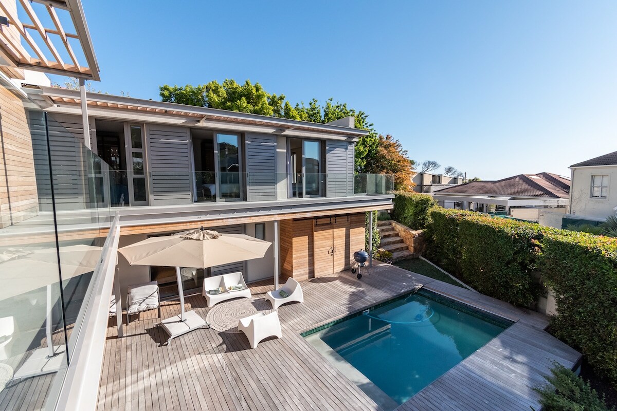 Contemporary meets luxury at the Villa Ravensteyn. A beautiful modern holiday home in Camps Bay with a sublime location. This double-story villa is within walking distance to the infamous Camps Bay promenade. Spoilt for choice with multiple vibrant attractions, shopping and seaside restaurants catering for all tastes. Enjoy your days with sea views and exquisite sunsets. An affinity pool, balcony with sun loungers and a built in gas braai perfect for poolside relaxation & sunbathing.